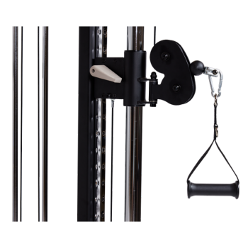 Система шкивов с плавным скольжением обеспечивает комфортные движения при каждом упражнении. Высокопрочные стальные тросы с полиуретановым покрытием гарантируют долговечность и плавность работы на тренажере.