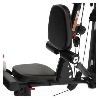 Весовой стек на 75 кг защищен кожухом, что обеспечивает безопасность во время тренировок. При необходимости нагрузку можно увеличить до 98 кг. В состав станции входят 6 тренировочных блоков: верхний тяговый блок, основную жимовую раму, срединный тяговый блок над спинкой, жимовые стрэп-рукояти, многоуровневый тренажер для разгибания ног и боковой тяговый блок.