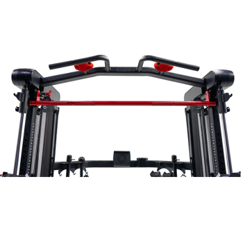 Одним из ключевых преимуществ SF5 является интеграция машины Смита с весовыми стеками. Встроенный несъемный гриф соединен с весовым стеком, что позволяет выполнять жимы без использования дисков. В отличие от классических систем со свободными весами, здесь штанга фиксируется автоматически в верхнем положении, оснащена предохранителями, обеспечивающими безопасность и защиту от случайного падения.